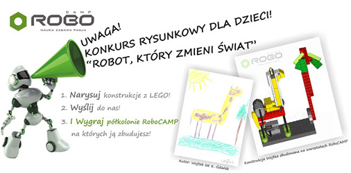 Konkurs polega na narysowaniu przez dziecko robota, którego chciałoby zbudować z klocków. Najlepsze pomysły zostaną zrealizowane podczas półkolonii RoboCAMP, a autorzy najlepszych prac otrzymają darmowe zaproszenia na półkolonie wakacyjne RoboCAMP.