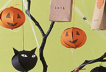 Piękne i proste do wykonania papierowe dynie, które można zawiesić na halloween'owym drzewku, na żyrandolu, na ścianie.