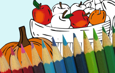 Jesienny ogród jest pełen smakowitych plonów - pokoloruj warzywa i owoce.