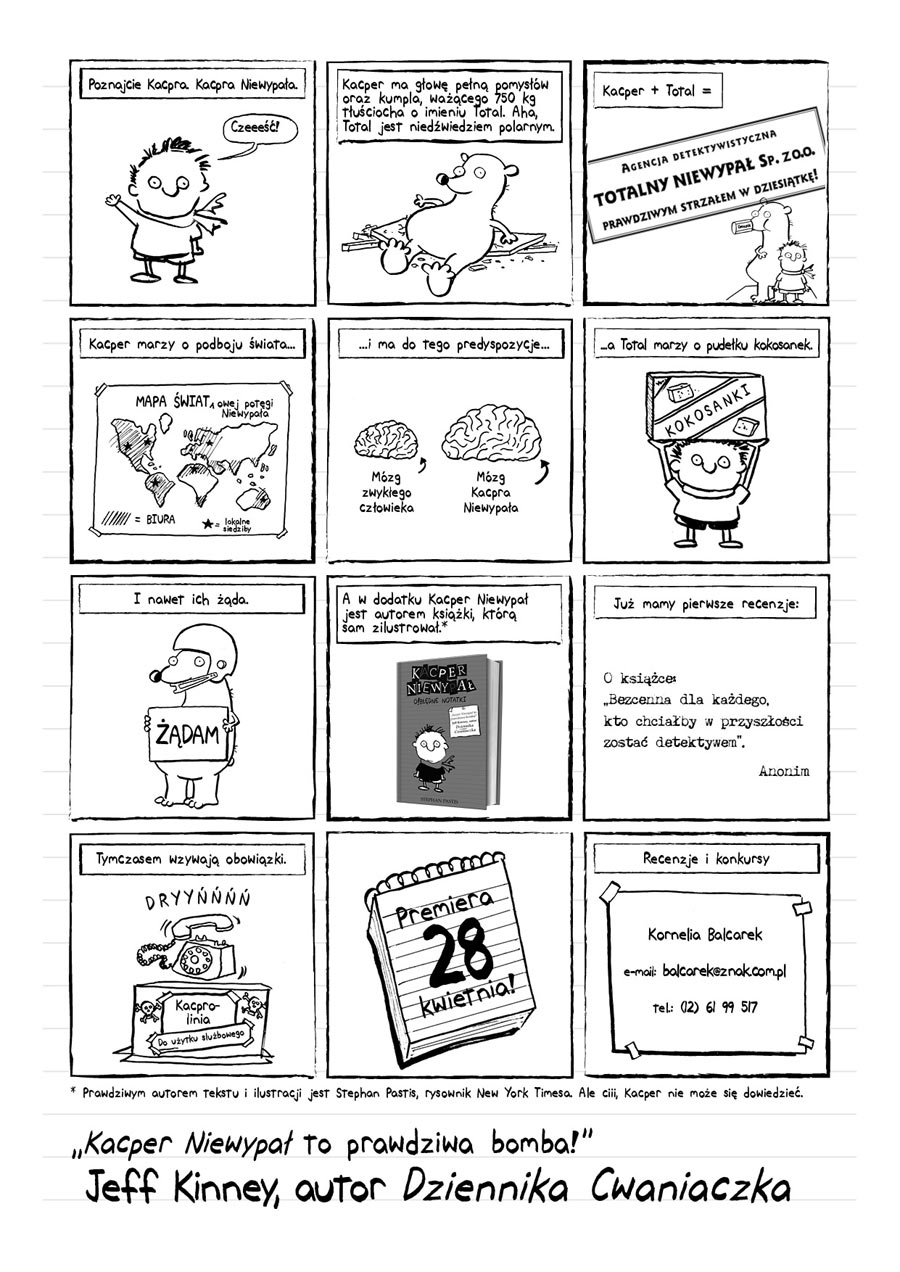 Pierwsza z książek dla dzieci o przygodach młodego detektywa Kacpra Niewypała i jego wspólnika, niedźwiedzia polarnego, o imieniu Total.