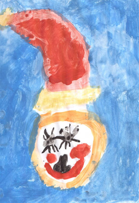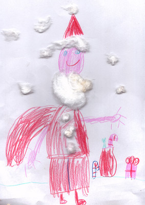 Mama napisała: Mikołaja tak sobie wyobraża Marta, która bardzo lubi wszelkie prace plastyczne, więc praca powstawała z przyjemnością ;)