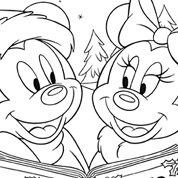 Zobacz jak Boże Narodzenie spędzają bohaterowie Disneya: Myszka Miki i Minnie, Kaczor Donald, Daisy, Goofy i Pluto. Wydrukuj i koloruj.
