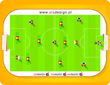 Ustaw swoich piłkarzy tak, aby piłka wystrzelona przez bramkarza i podawana przez kolejnych zawodników trafiła do bramki przeciwnika.